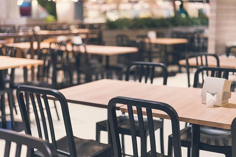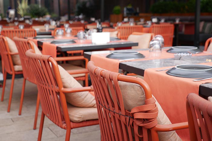 Les allées larges et ouvertes permettent de circuler librement entre le bar centrale, les espaces avec 130 places assises et le 6 kiosques.